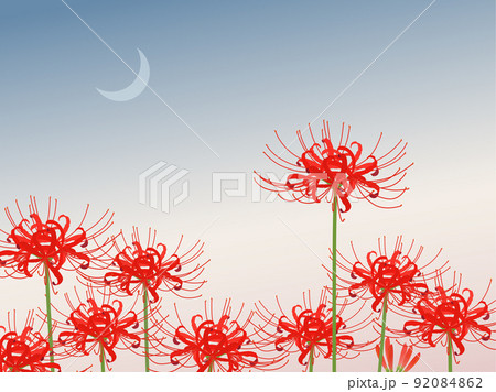 彼岸花と月のイメージのイラスト素材